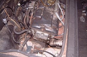 Als nächstes wurde der Luftfilter des Golf in dem murenamotorraum verstaut. Zunächst wurde der murena Luftfilter herausgenommen und nach dem Demontieren noch mal die Zündung überprüft, da man ohne Luftfilter wunderbar die Schwungscheibe und die Markierungen am Motorblock einsehen kann.