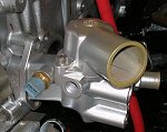 Hier ist der umgebaute Ansaugkrümmer auf dem Motor montiert. Die verwendete 60mm vom Porsche 944 hat mehr als den doppelten Querschnitt des Originalvergasers bei voller Öffnung. Weitere Infos zum Thema Drosselklappe ist im Kapitel 2.2l Motor nachzulesen.