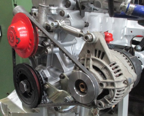 Die Lichtmaschine wird durch eine aus dem Micra ersetzt und dafür eine neue Riemenscheibe und Halter gedreht (ca. 4h Arbeit).